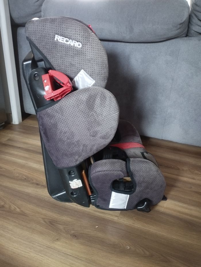 Siège auto de marque recaro, pouvant être de 9 a 18kg avec les ceintures intégrées puis de 18kg a 36kg avec les voitures de la voiture. Têtière réglable pour plus de confort selon lage de l'enfant couleur gris alcantara et rouge en très bon état (juste un petit défaut sur le tissu du cache ceinture mais vraiment léger). Siège auto toujours bien entretenu et lavé. La catégorie sera modifiée avant le paiement pour moins cher de frais de port.