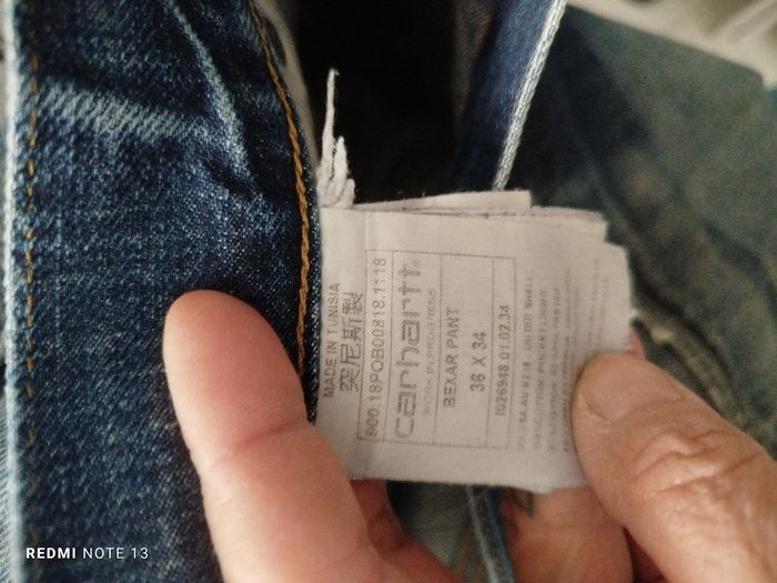 #kytie46homme. Jean taille 46 (36/34) de marque Carhartt mesure de la taille 46 cm tour de cuisse 70 cm hauteur 112 cm cheville 44 cm le jean est en état neuf ref 725