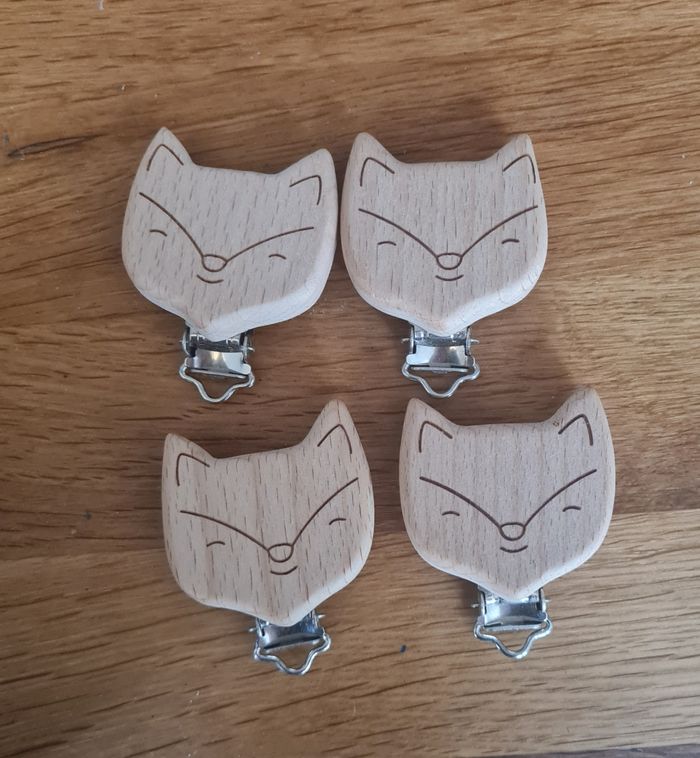 Lots de 4 accroches tetines en bois tete de renard pour faire ses creations.