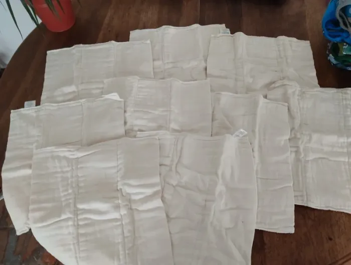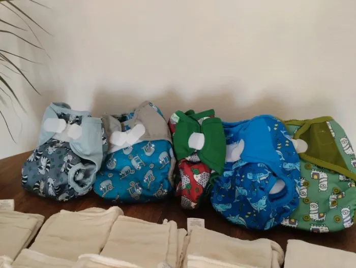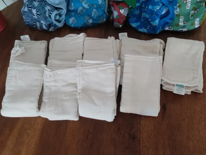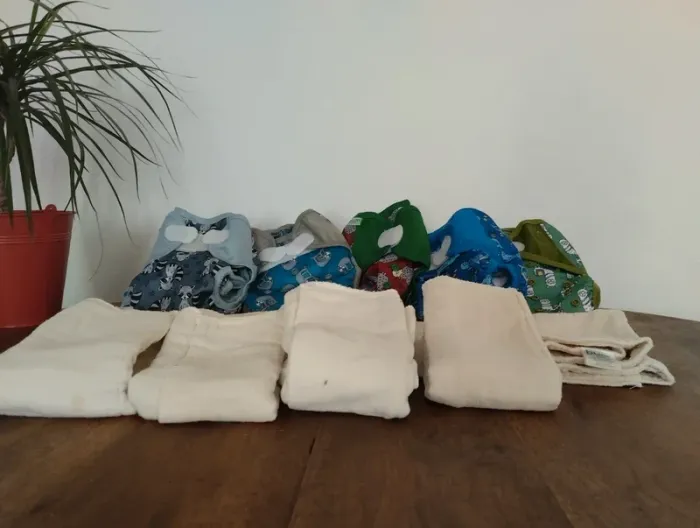 4 couches lavables, avec 7 Inserts . Une couche utilisée (1fois) offerte Taille 0 3 ans