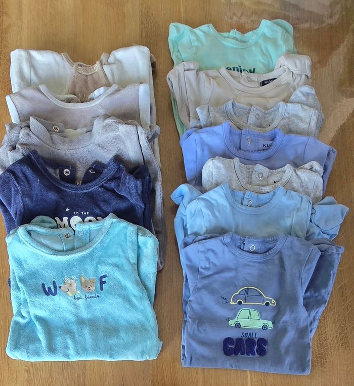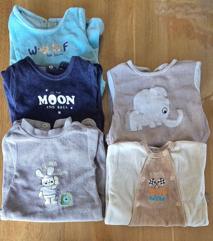 Lot 1 mois 17 pieces 5 pyjamas chaud 7 pyjamas Léger 1 veste avec capuche 4 bonnets Marque diverses Possible au détail également