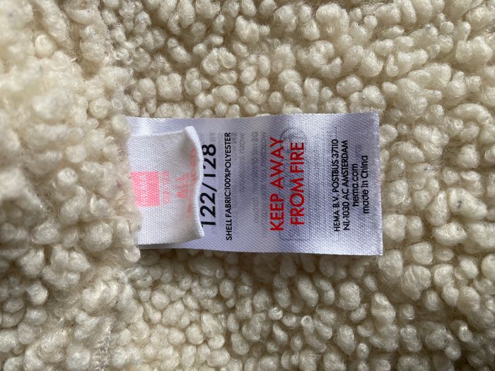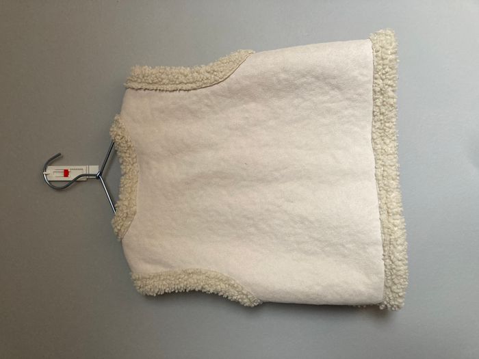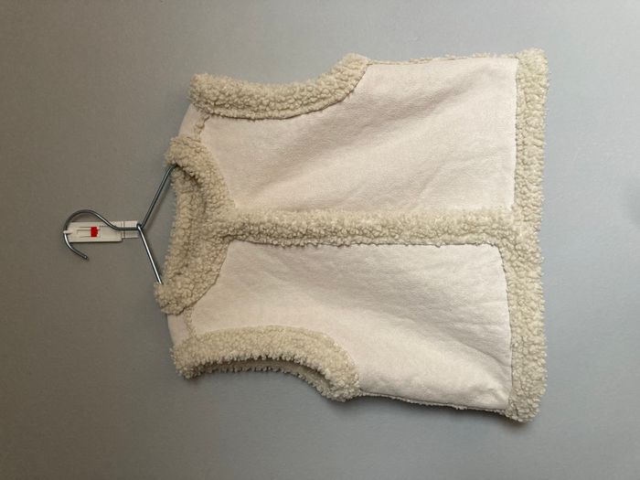 Veste sans manches type doudoune en maille "moumoute" (Sherpa/polaire bouclée) de chez Hema. Taille 122-128 (7-8 ans). Idéal par-dessus un sous-pull ou une petite robe. Très bon état. #Worryfree_7ans #Worryfree_8ans #Hema #GiletSansManches #Moumoute #Sherpa #DoudouneSansManches #ModeFille #122cm #128cm