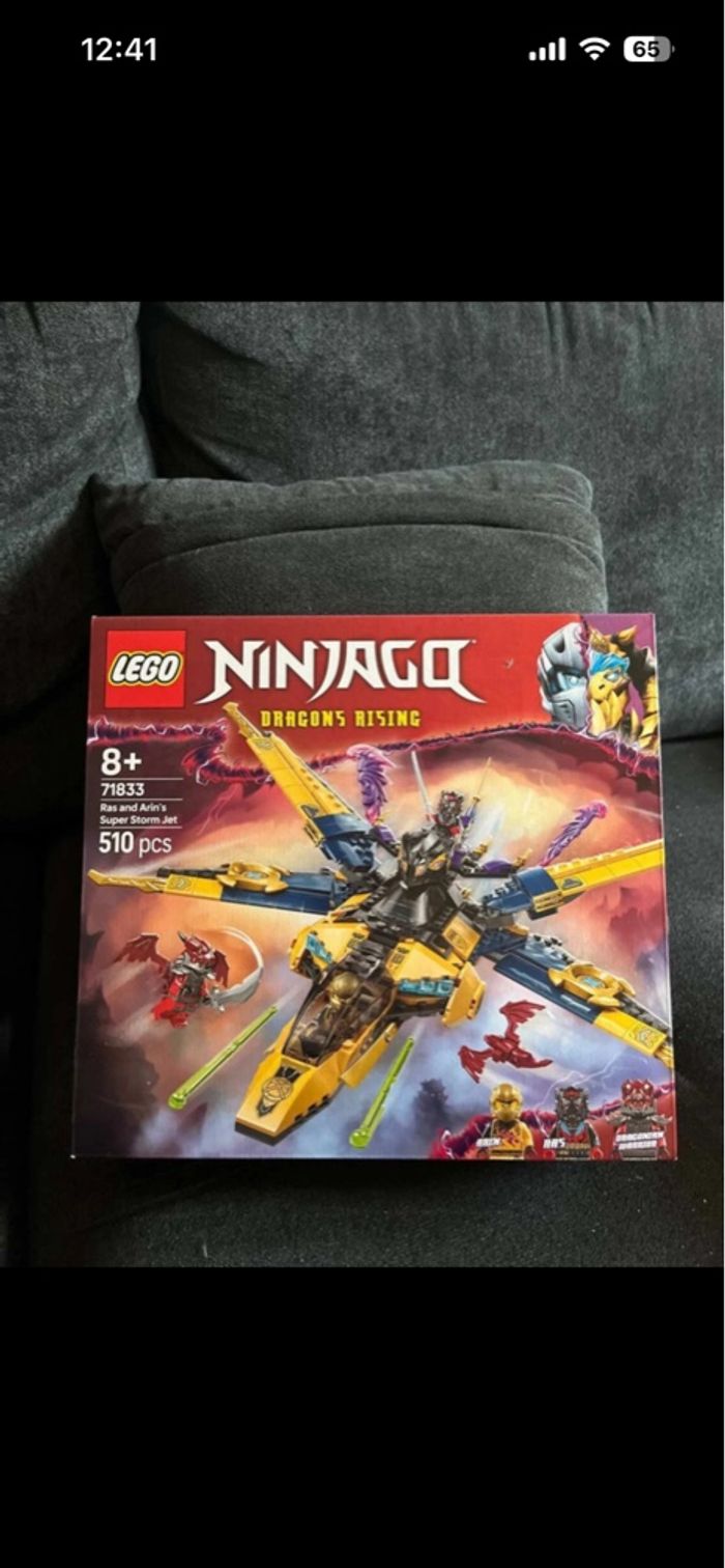 Boîte Lego Ninjago Ras and arin’s super storm jet neuve. Boîte impeccable et jamais ouverte. Présence de mini figurines. Référence : 71833