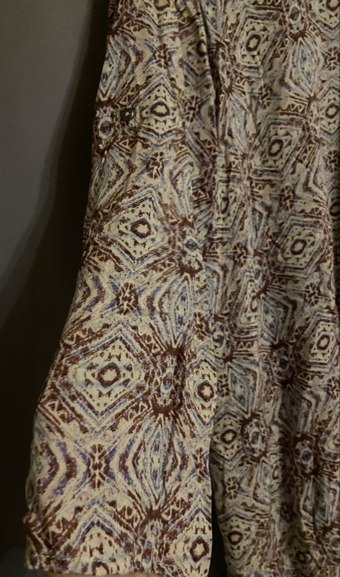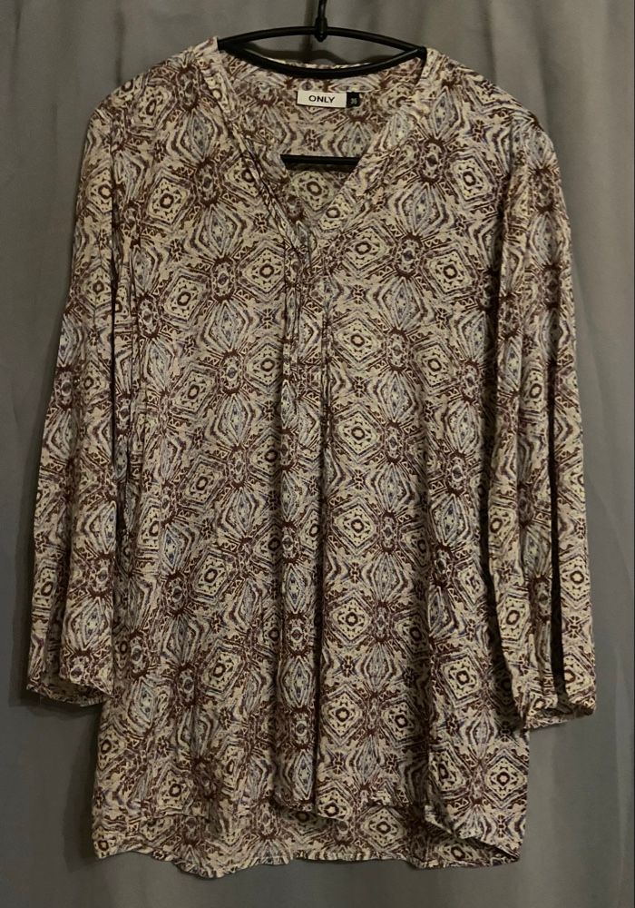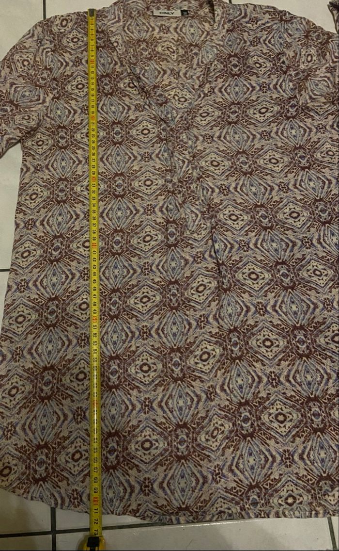 🚨Merci de bien lire l’annonce. Blouse à motifs »Only »dans les tons de marrons,beiges et bleu clair manches longues,en très bon état. Il est noté sur l’étiquette taille 36 selon deux guides de l’IA,correspondrait plus à du 40/42. Mesure d’aisselle à aisselle:49,5cm=99cm de tour de poitrine. 🎯Guides de tailles disponibles en dernières photos. 📌Il faut savoir que souvent les marques peuvent avoir un guide de taille qui diffère des unes aux autres donc Merci de vérifier les mesures de vos vêtements avec celui-ci car si ça ne convient pas je n’en serais pas responsable. Si vous avez le moindre doute, n’hésitez pas avant achat de me demander les mesures ou renseignements afin d’éviter tous désagréments. PS:Tous les vêtements sont lavés et repassés avant chaque envoi. 🔥🔥Réduction sur les lots activée🔥🔥 -5% de remise pour 2 articles. -10% de remise pour 3 articles. -20% de remise pour 5 articles.