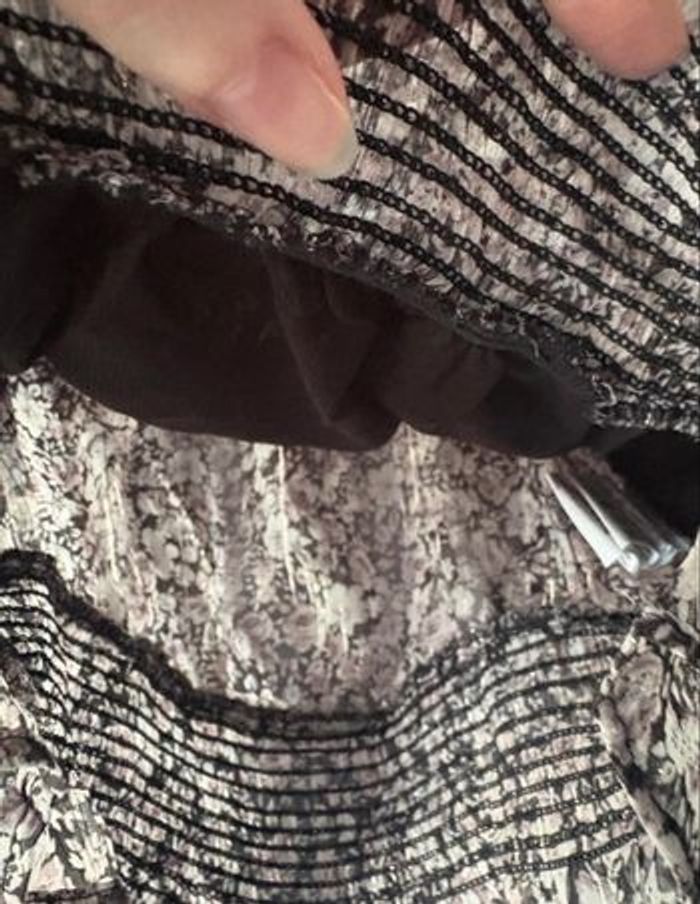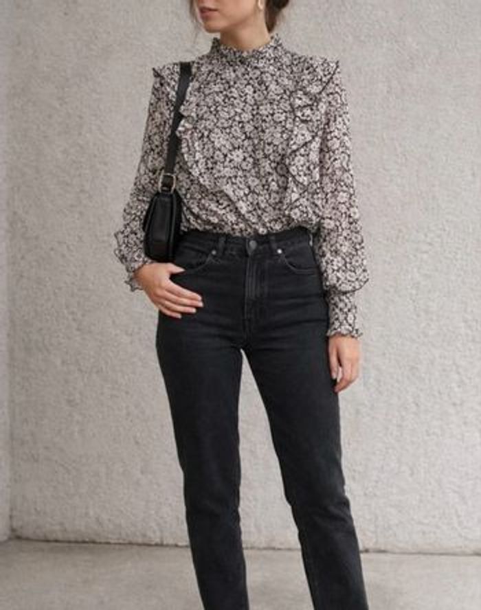 Jolie blouse à fleurs de la marque Tally Weiji, taille M. Coupe féminine et élégante, idéale pour un look chic ou casual. -Motif floral noir et blanc -Manches longues légèrement transparentes -Dos légèrement transparent -Doublure sur le devant → pas transparente à l'avant -Col montant, sans décolleté -Ouverture dans le dos au niveau du cou avec boutons -Taille smockée en bas pour une belle silhouette Blouse légère et agréable à porter, parfaite en toute saison avec un jean, une jupe ou un pantalon habillé. État : Très bon état Taille : M peut convenir à un S Marque : Tally Weijl Maison, non-fumeur