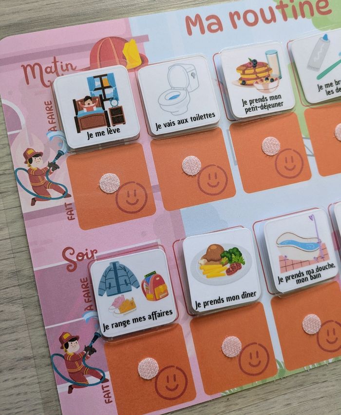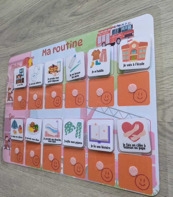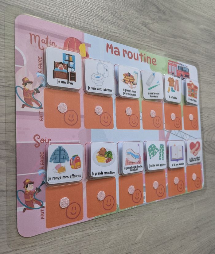Tableau de routine enfant matin et soir camion de pompier incendie, rituels quotidiens - photo numéro 6