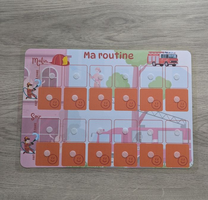 Tableau de routine enfant matin et soir camion de pompier incendie, rituels quotidiens - photo numéro 7