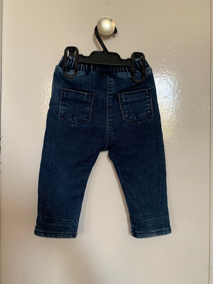 Vends un jean bleu de la marque Super U en taille 6 mois. Très bon état