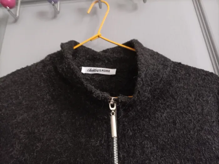 Veste/gilet en laine Poche avec fermeture éclair Fermeture éclair pour fermer le gilet Taille 3 70 % acrylique, 26 % polyester et 4 % polyamide Marque Christine Laure