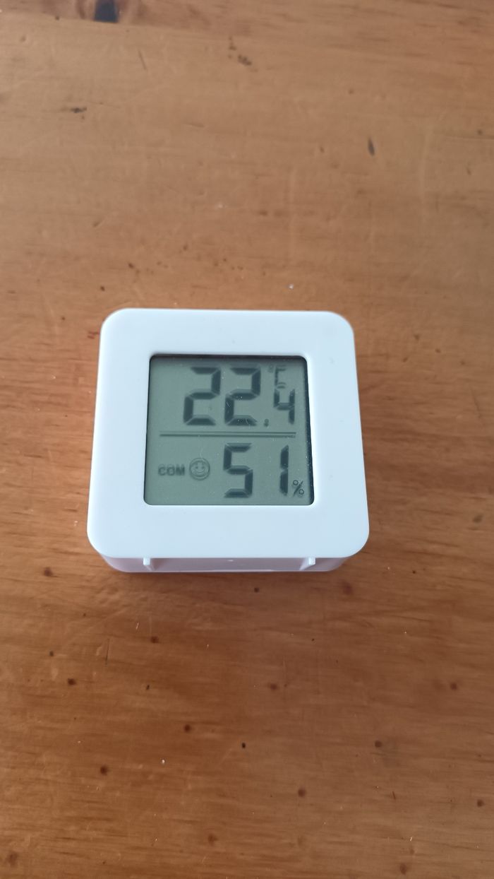 Mini Thermomètre-Hygromètre Numérique ​Maintenez un environnement intérieur idéal. ​Compact, fiable, indispensable. Fonctionne à pile. Pile incluse. Dimension : 4.5 × 4.5 cm Produit neuf.