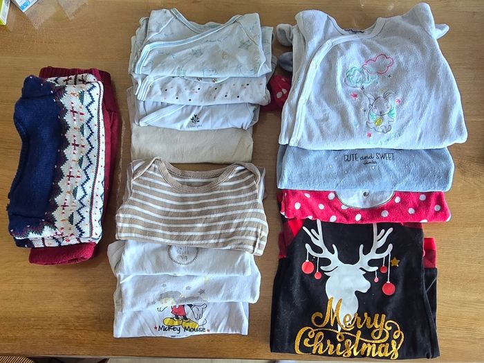 Lot 3 mois 13 pièces 3 pyjamas chaud 8 body manches longues 1 ensemble chaud 1 body Noël sans pied Marque diverses
