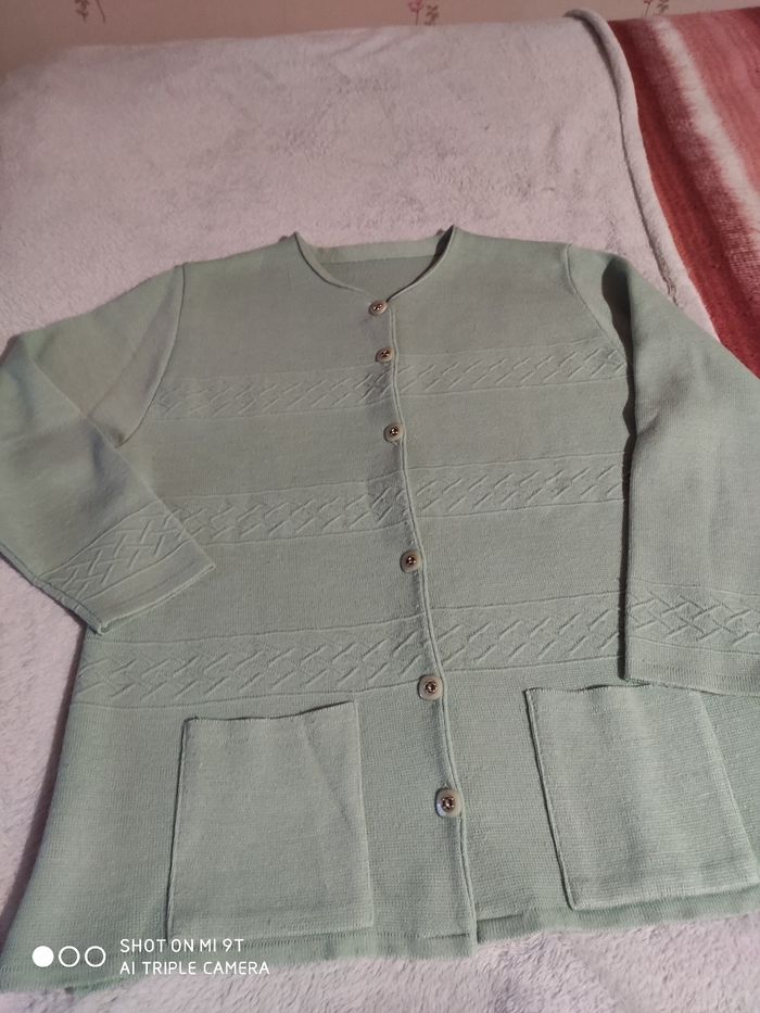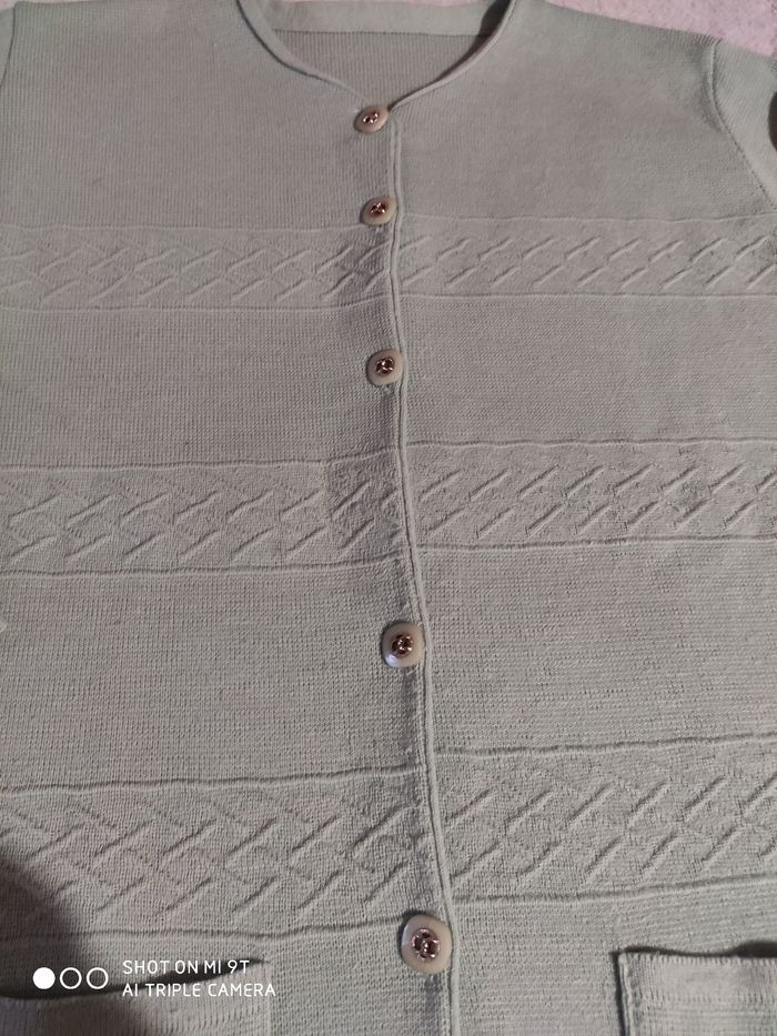 Gilet femme taille 54/56 en très bon état, pas de tâches, ni trous. Couleur vert clair, une poche de chaque côté, boutons sur le devant. Taille correctement et peu porté par une seule personne.