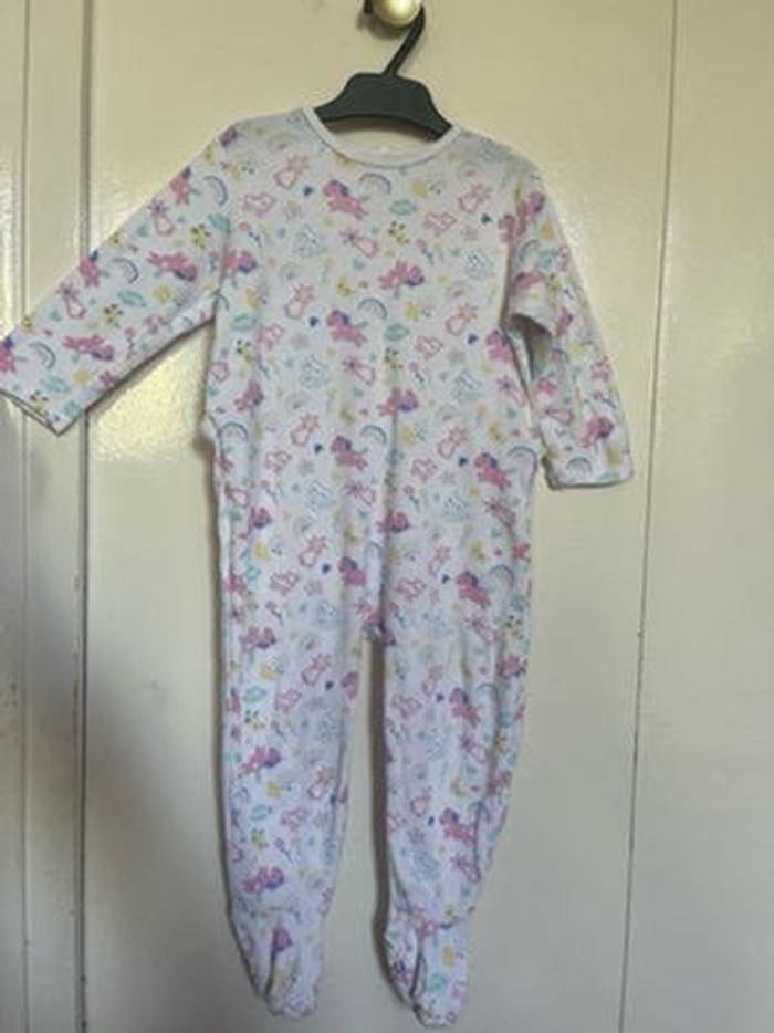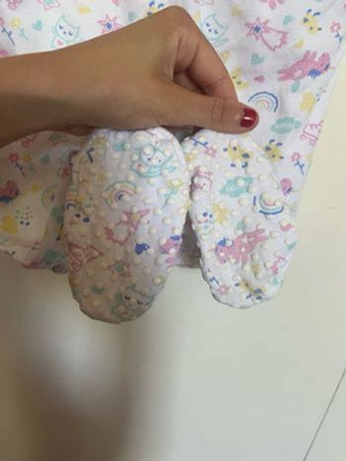 Vends pyjama blanc à motifs marque tex en taille 18 mois Très bon état (juste anti dérapant un peu décollé sous pied droit voir photo 4) Petit défaut photo 5