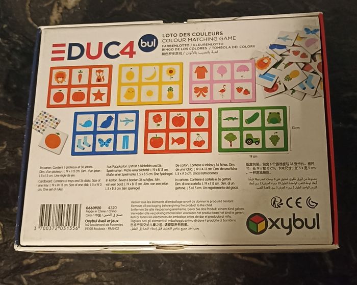 Loto des couleurs Marque Oxybul Complet Très bon état, usure classique (un coin de la boîte abîmé voir dernière photo)