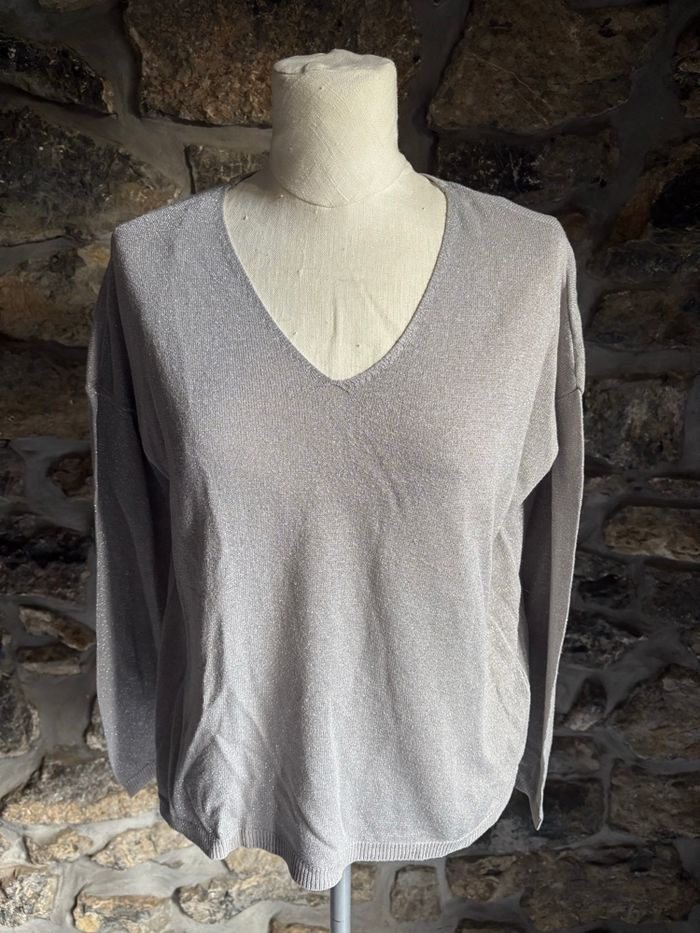 Pull léger, col V, gris pailleté  - photo numéro 1