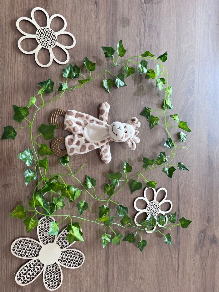 Doudou girafe plat Avec partie dentition au pieds Le ventre fait du bruit quand on le froisse #emy200309_jeuxeveil