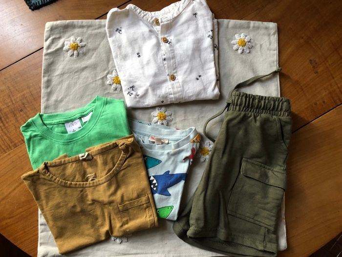 Lot 3 ans, lot 4 ans, 3/4 ans, lot garçon, vêtements garçon, été, t-shirt garçon, chemise enfant, short kaki, Zara kids, DPAM, du pareil au même, Nixnut, capsule wardrobe, basiques, petit prix, très bon état