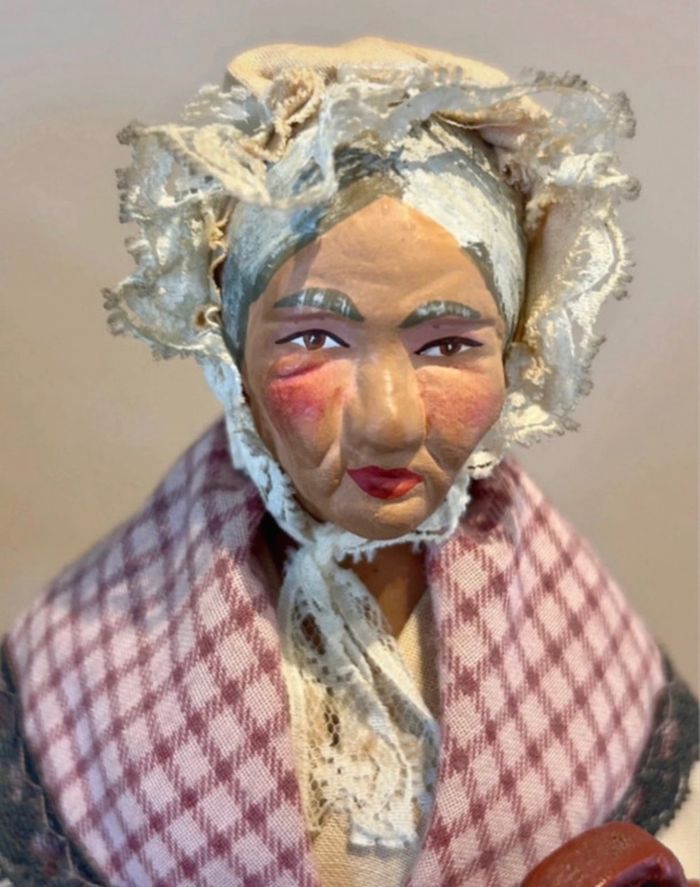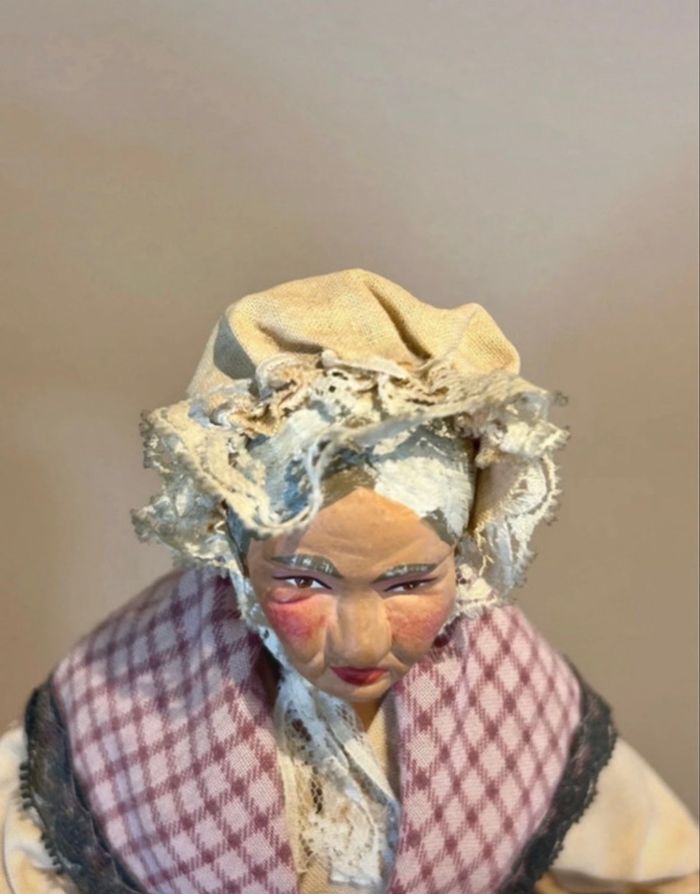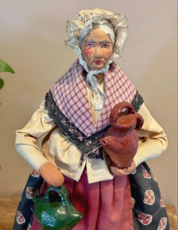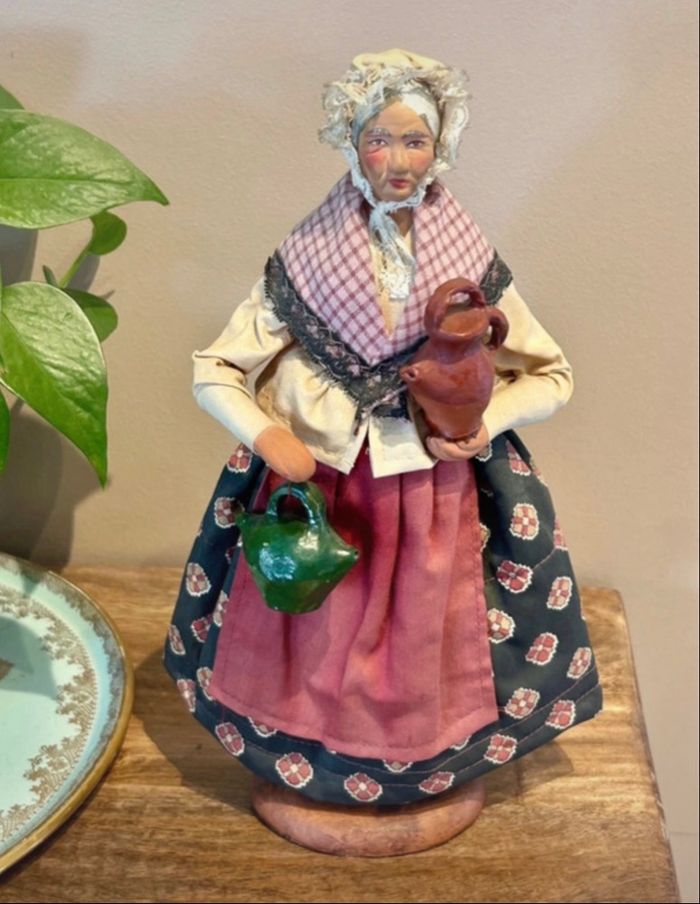 Magnifique santon signé Maryse Di Landro Figurine provençale en terre cuite Porteuse d'eau Très ancienne pièce rare de collection Aucun impact sur la terre cuite Dentelle chapeau un peu abîmée Hauteur 33 cm