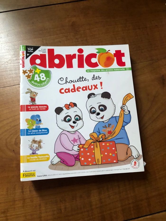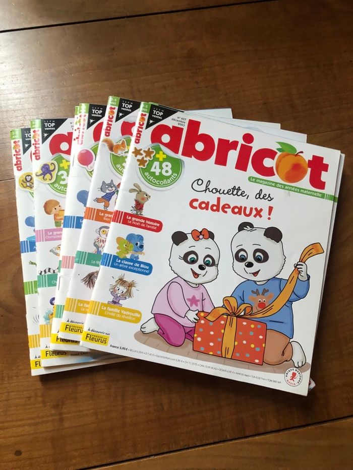 Je vends un lot de 9 magazines Abricot (année 2024) : histoires, jeux, activités, coloriages, petites découvertes… parfait pour occuper un enfant et lui donner envie de feuilleter.