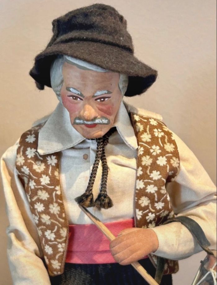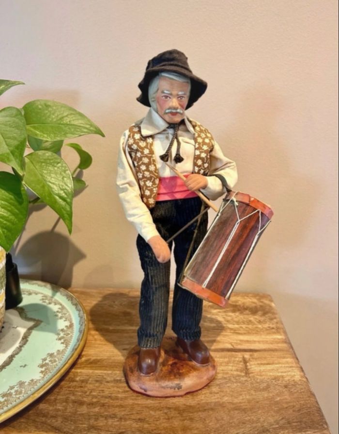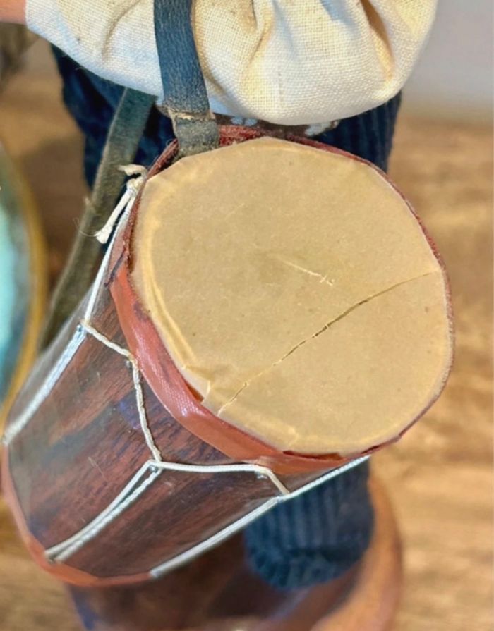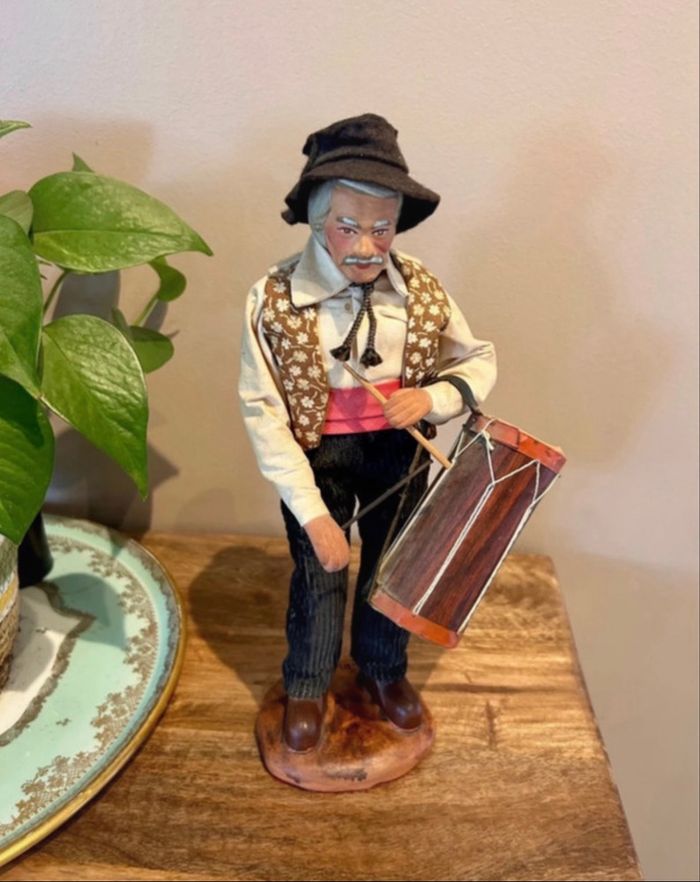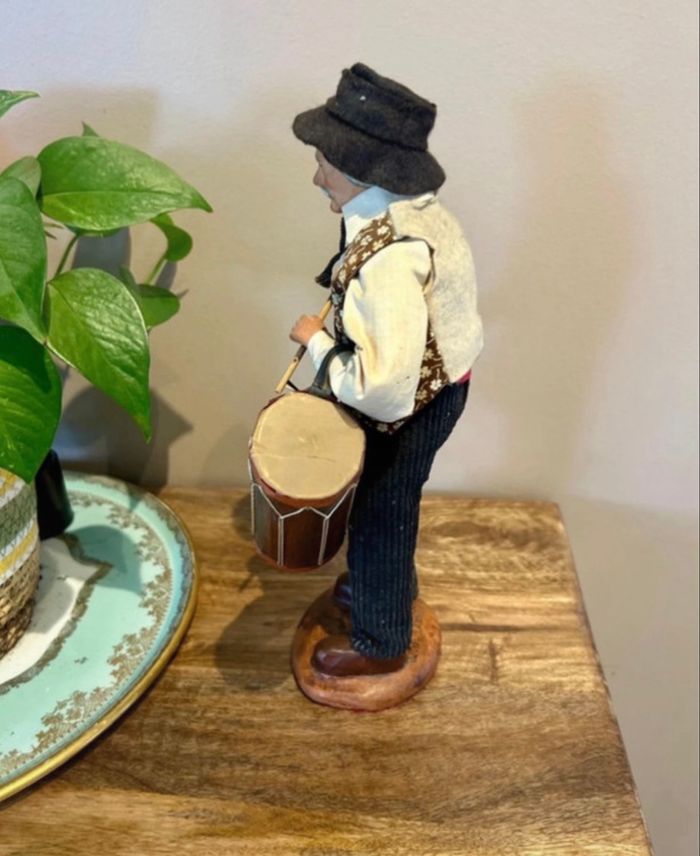 Magnifique santon signé Maryse Di Landro Figurine provençale en terre cuite Joueur de tambour Très ancienne pièce rare de collection Aucun impact sur la terre cuite Déchirure sur le tambour et petite tache sur la chemise Hauteur 30 cm