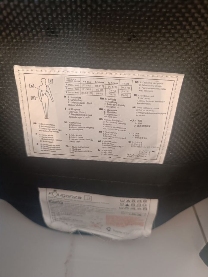 Gilet qui ne comporte aucun chocs. Les scratchs se retire au niveau des épaules et la taille pour le nettoyage et le réglage. Les scratchs fonctionne Tous. Parfait état