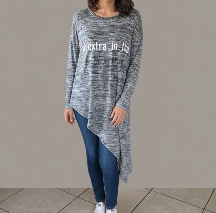 Tunique longue sur un côté gris chiné XL Mim 53% viscose, 44% polyester et 3% elasthane Très bon état