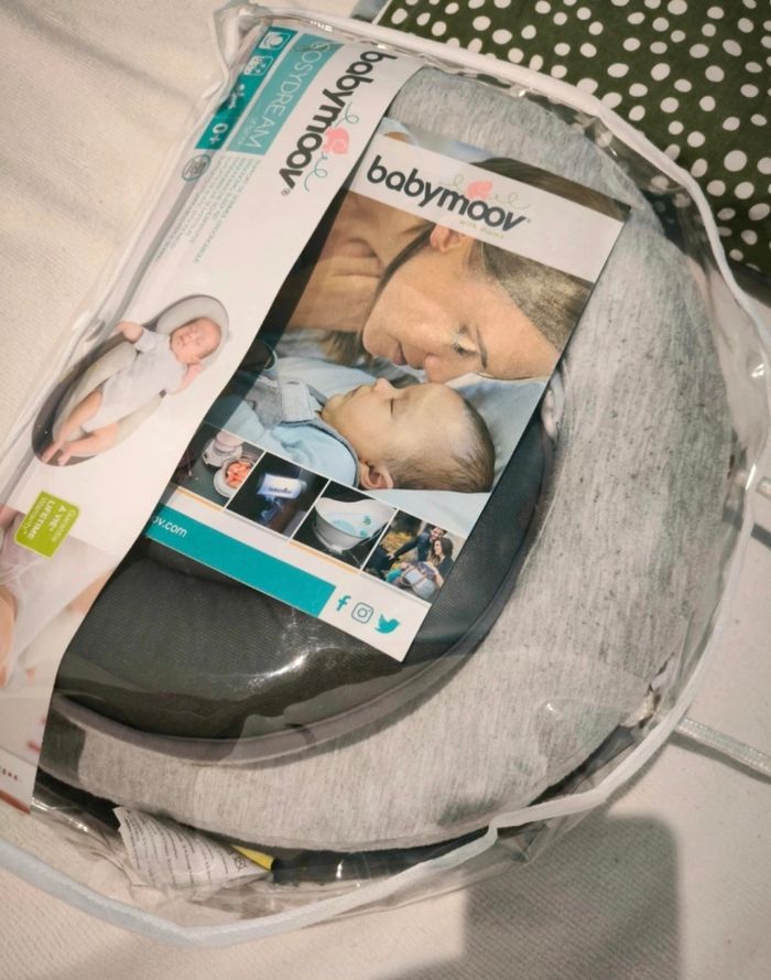 Coussin morphologique bébé avec ça pochette et notice. Babymoov, très bon état. Quelques bouloches principalement sur le boudin amovible. Description magasin: Le Cosydream Babymoov est un cale-bébé qui assurera des nuits sereines à votre bébé. Avec son rouleau de positionnement en microbilles, le Cosydream recréé un espace réduit qui rassure votre bébé tout en lui assurant une position parfaite en maintenant son dos et en surélevant ses jambes. Le Cosydream possède un cale-tête intégré pour que votre bébé garde une tête bien ronde. Pour offrir un confort optimal, le Cosydream est réalisé avec des matières ultra douces et respirantes et une mousse à mémoire de forme. Le Cosydream est également utilisable avec un plan incliné. Il ne faut plus utiliser ce produit à partir du moment où votre bébé sait se retourner. Pratique : Pour garantir des nuits sereines à bébé Ergonomique : Espace réduit qui rassure votre enfant Confortable : Mousse à mémoire de forme ultra douce CARACTÉRISTIQUES TECHNIQUES Dim. : 40 x 10 x 31 cm. Composition du matelas : 100% polyester. Biais : 92% coton & 8% élasthanne. Rembourrage : 100% polyuréthane. Composition du rouleau de positionnement et du contour de la tête : 60% polyester, 35% coton et 5% élasthanne. Rembourrage : 100% polyester. Entretien : lavable en machine à 30°C. 👣👣👣👣 N'hésitez pas à faire des lots ✅🏷️ Envoi mondial Relay (⛔sauf locker⛔ou je medéchargedetouteresponsabilité) et relais colis uniquement 📦✨🌻📦✨🌻📦✨🌻