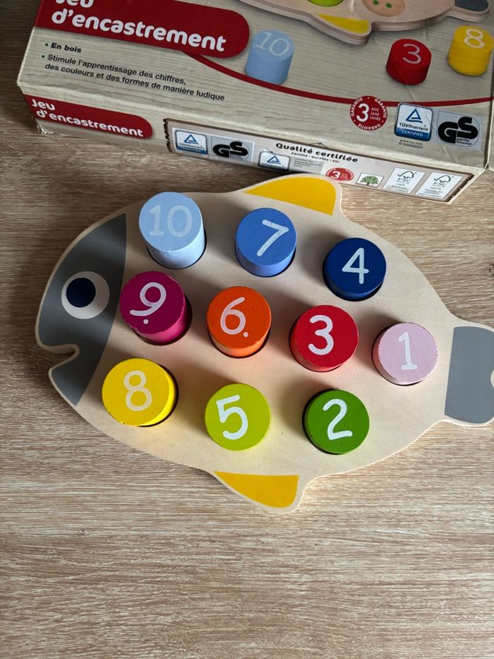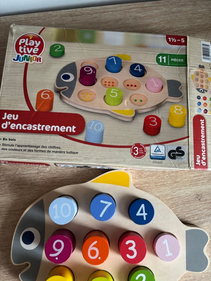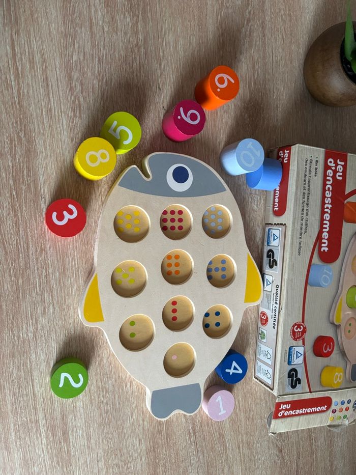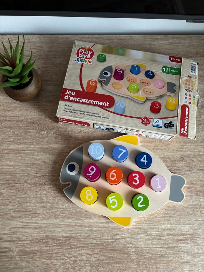 Jeu d’encastrement apprendre à compter de 1 à 10 et les couleurs En bois play tive 18 mois à 5 ans La boîte un peu abîmé