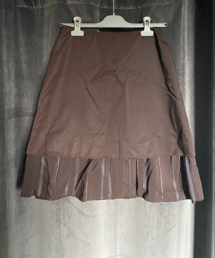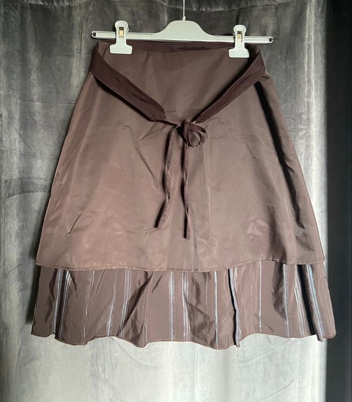 Jupe avec doublure Ceinture avec possibilité de ne pas la mettre Fermeture éclair à l’arrière