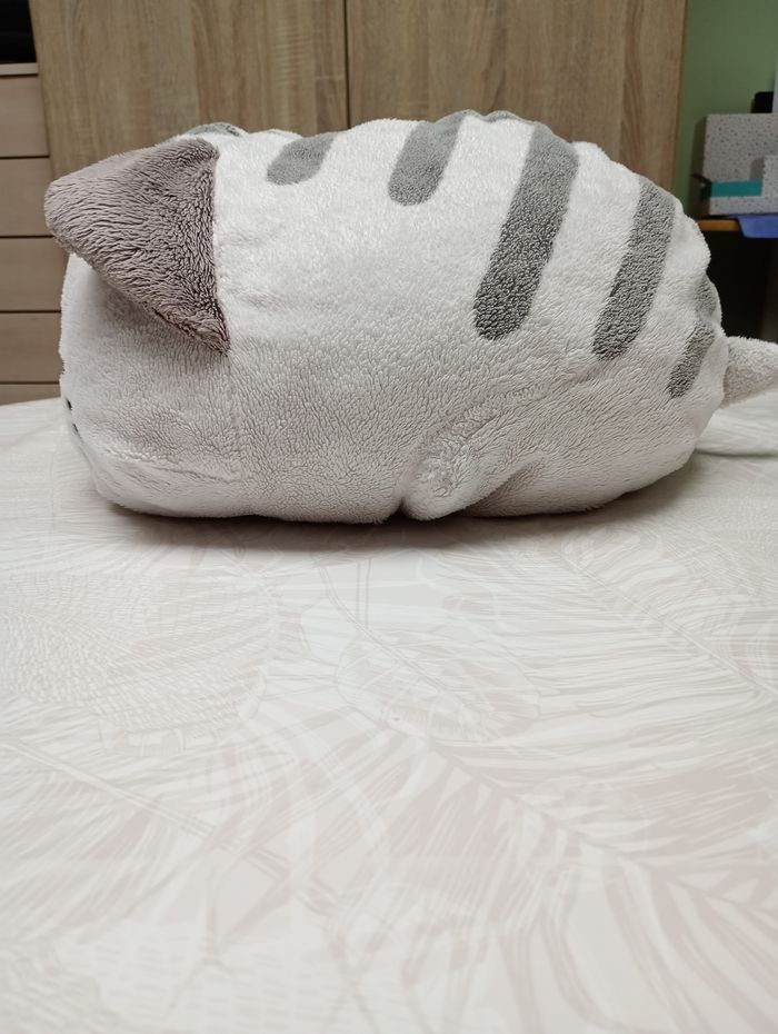 Peluche "coussin" chat Nemuneko. Dimensions : 40 x 37 x 18 cm. Bon état.