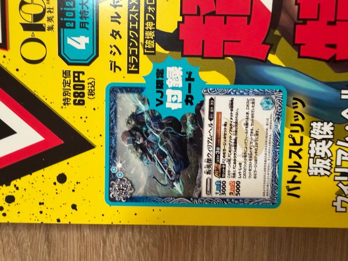 Magazine japonais V Jump 4 – 2026, version japonaise 🇯🇵, jamais utilisé. 📅 Date de sortie au Japon : 20/02/2026 Édition spéciale avec de nombreuses cartes promotionnelles exclusives, dont notamment : 🃏 One Piece Card Game : Sanji P-120 (promo japonaise) 🃏 Yu-Gi-Oh! OCG : Possessive Resonance - Win 🃏 Haikyu!! Baboka!! BREAK : Strongest Twins 🃏 Union Arena – Goddess of Victory: NIKKE : Cinderella 🃏 Battle Spirits : Rebel Hero William Hell Couverture Dragon Ball Fusion World + cartes bonus incluses. 📦 Magazine neuf, idéal collectionneur ou amateur de cartes promotionnelles japonaises. 📍 Remise en main propre possible sur Toulouse 🎥 Envoi possible — filmé systématiquement Disponible pour toute question ou photos supplémentaires.