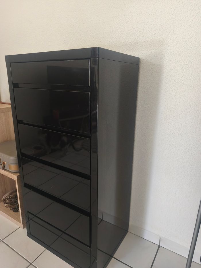 Bonjour , Je vends ce meuble de rangement noir laqué avec 6 tiroirs. Pratique et élégant, il apportera du rangement et du style à votre intérieur ! - Type de produit : Meuble de rangement avec tiroirs - Nombre de tiroirs : 6 - Matériau : Laqué - Couleur : Noir - Fonctionnalités : Tiroirs coulissants - Démontable : Oui - Style : Contemporain -Longueur= 58cm -Hauteur= 117.5 cm -Largeur = 42 cm Très bon état malgré quelques rayures . Prix à débattre dans la limite du raisonnable. N'hésitez pas à me contacter pour plus d'informations ou de photos.