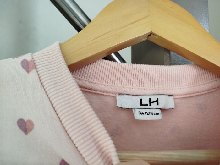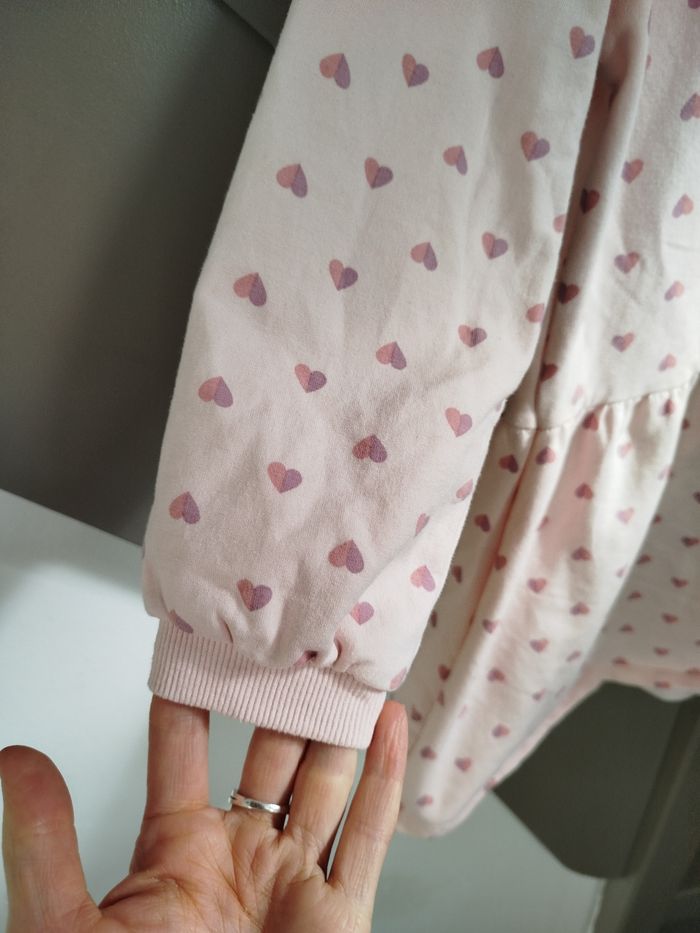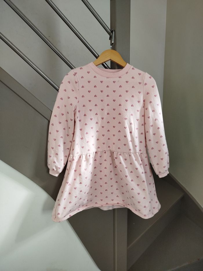 Robe rose à motifs coeurs. Matière sweat. Marque La Halle, taille 8 ans. Réduction activée sur les lots. #fille #robe #lahalle #8ans