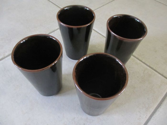 Lot de 4 mugs sans anse en grès Contenance de chaque mug : 25 cl. Etat neuf.