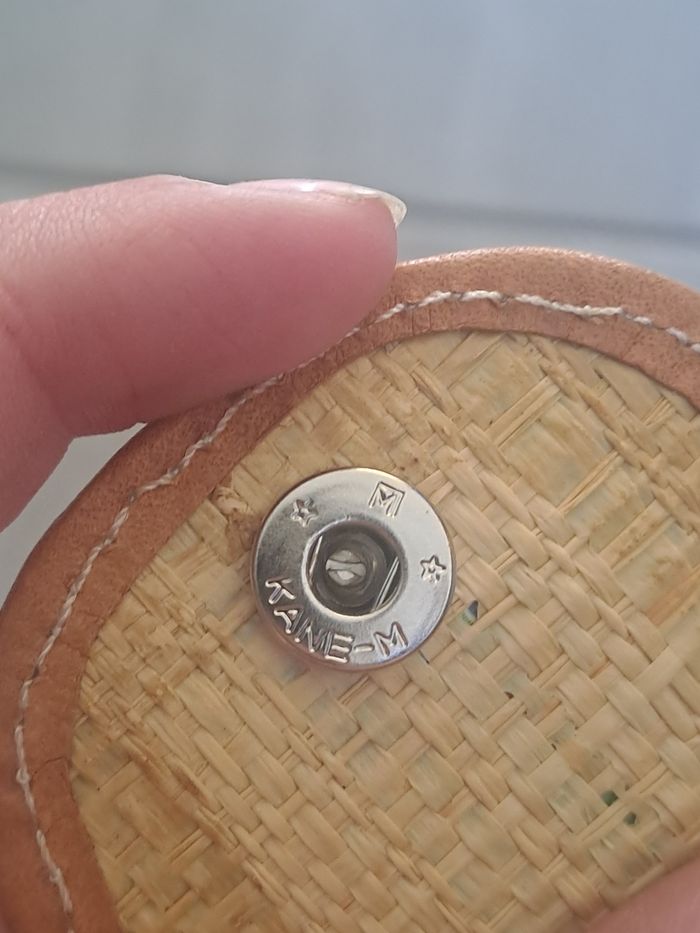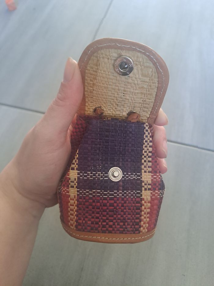 Porte monnaie ou Bourse Attache avec un bouton pression En raphia avec contour en cuir Mesure en photo Multicolore Marque Kane-M