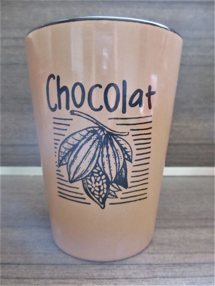 Mug « chocolat ». Hauteur : 12 cm. Contenance : 40 cl. Etat neuf.