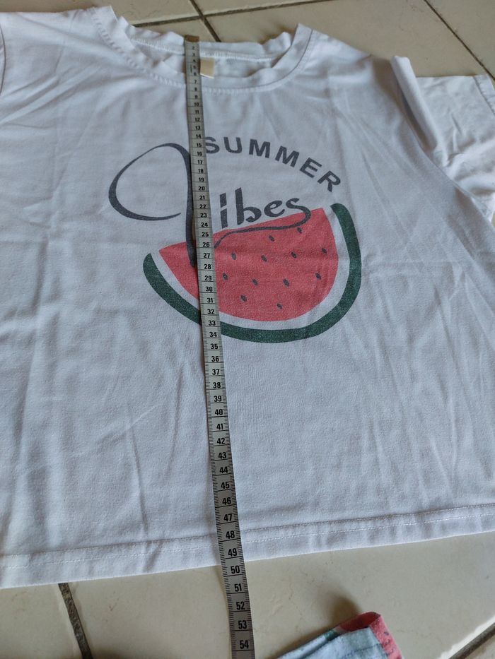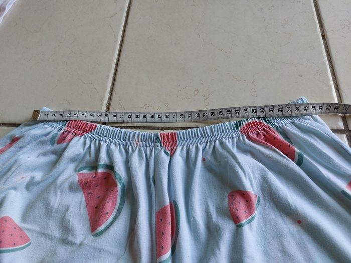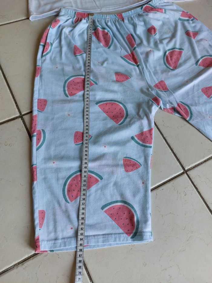 Pyjamas femme fille 1 haut manches courtes et 1 pantacourt Motifs : tranches de pastèque Taille L 65% polyester - 35% coton Lavable à 30°C Bon état