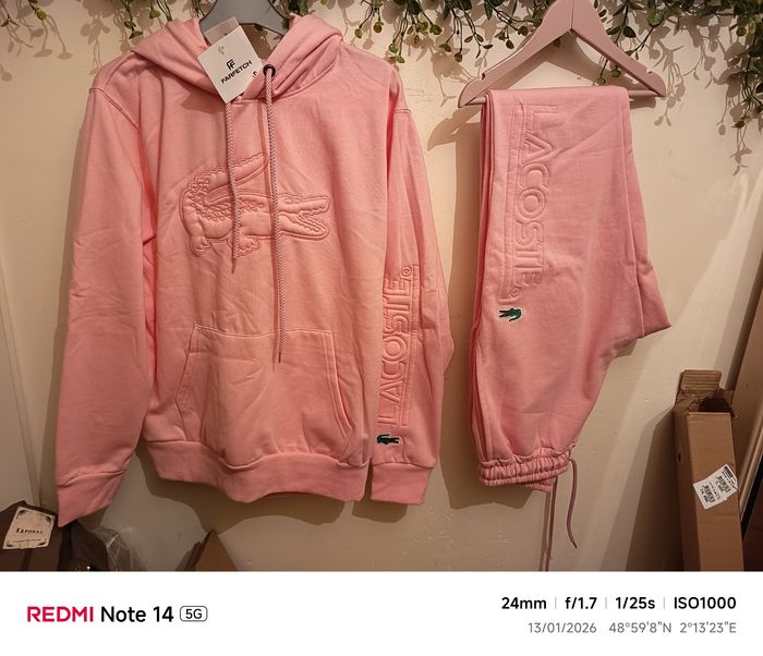 Très joli survêtement rose épais acheté à l'étranger à l'effigie de la grande marque avec le crocodile, il est top bonne qualité.16 ans , prix payé 25€ le haut et 25€ le bas.