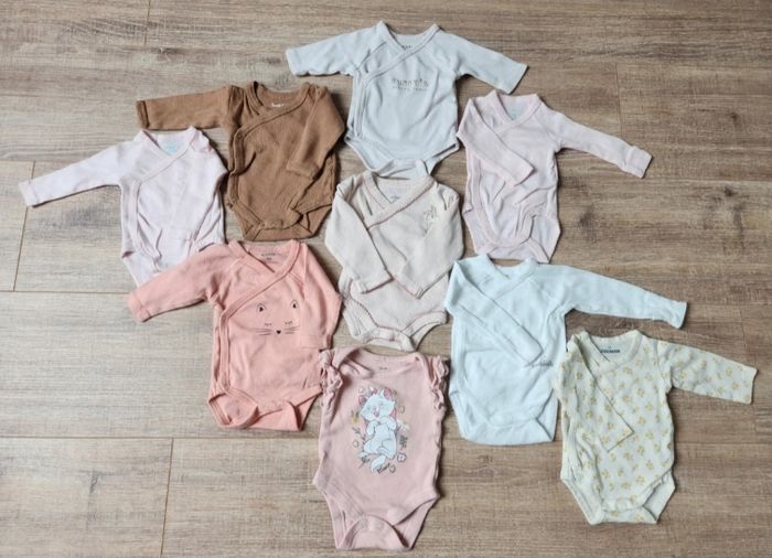 Bonjour, Je vends ce lot de bodies, taille naissance pour fille. En très bon état. Composé de : 8 bodies manches et un body manches courtes. Plusieurs marques.