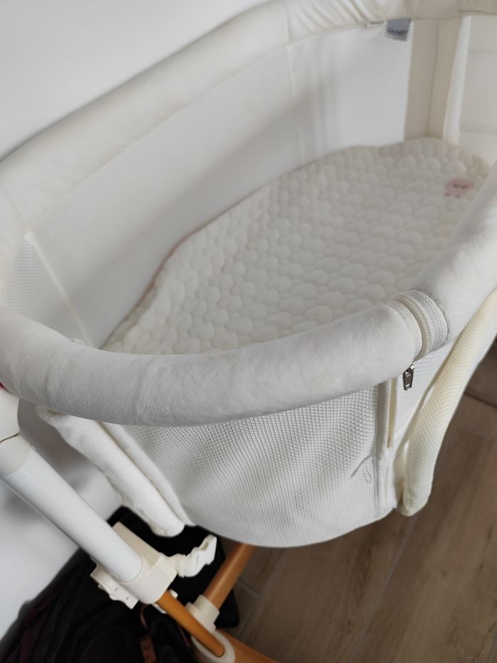 En très bon état, très pratique, plusieurs positions, mode berceau. On peut utiliser le haut comme lit parapluie, génial pour les voyages.