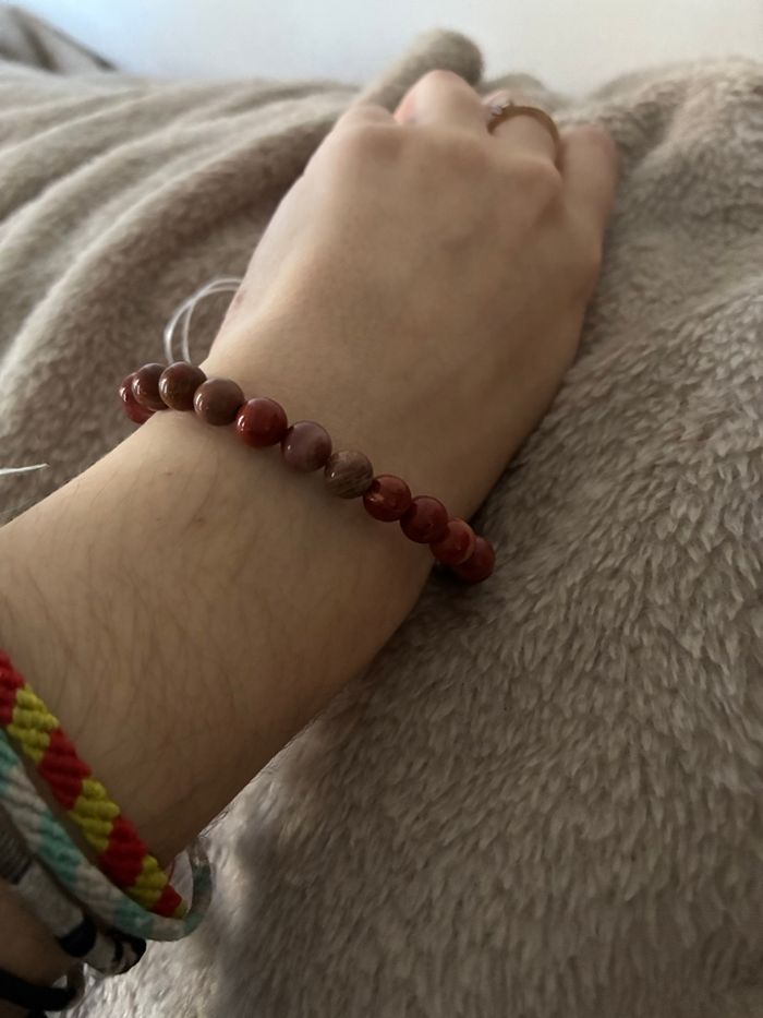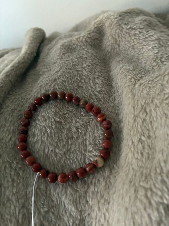 Bracelet en pierre jaspe bordeaux fait à la main dans mon atelier