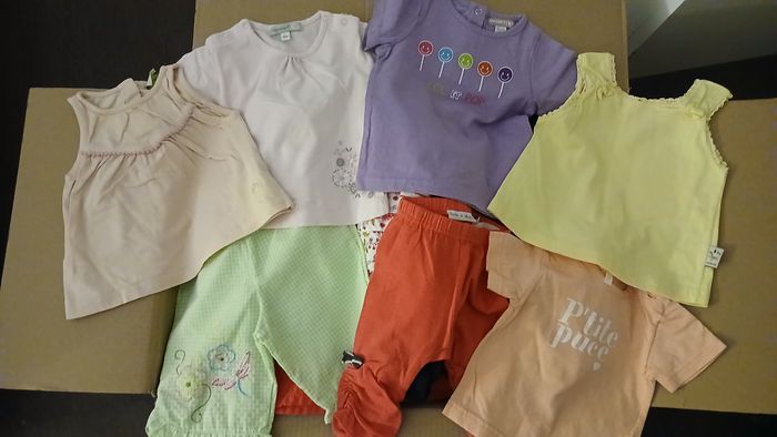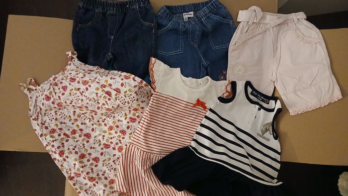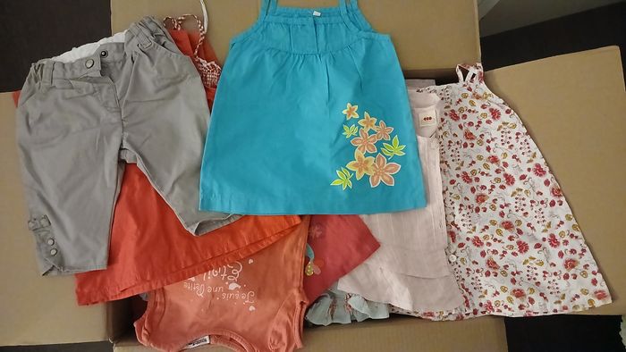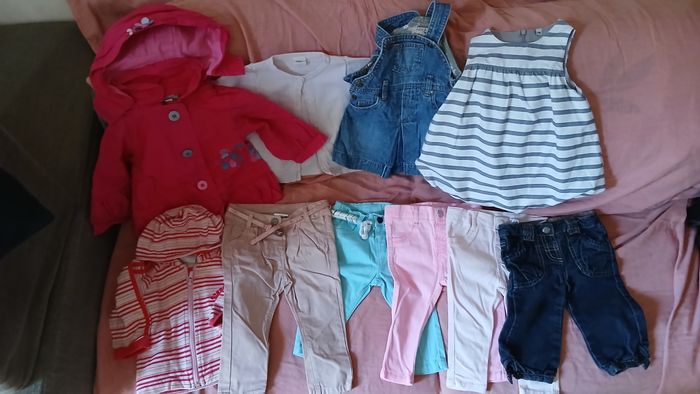 lot de 15 vêtements aléatoires en 6 mois (qq exemples en photo) robes - t shirts - pantalons - vestes - ensembles beaucoup de marques