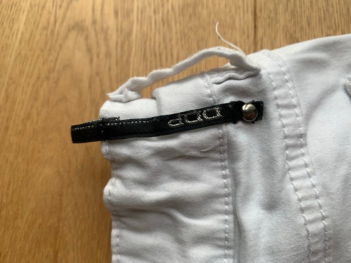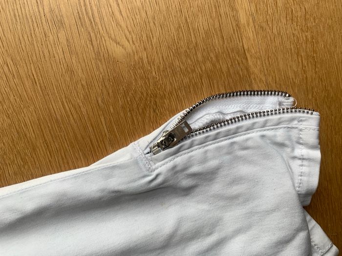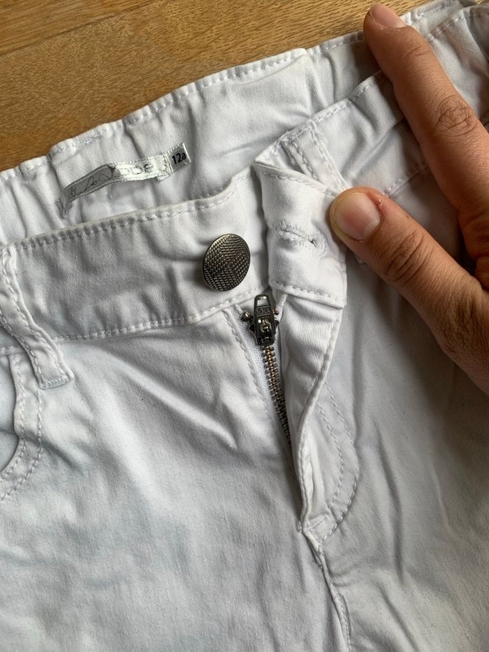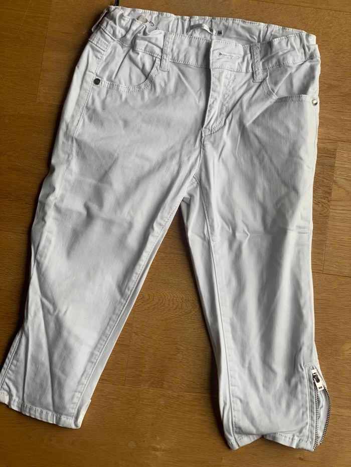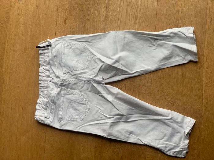 Pantalon blanc mi longueur avec fermetures en bas et decos sur les poches arrières. Porté quelques fois.