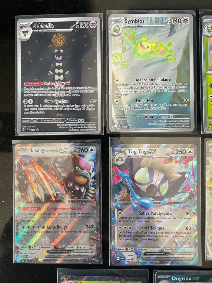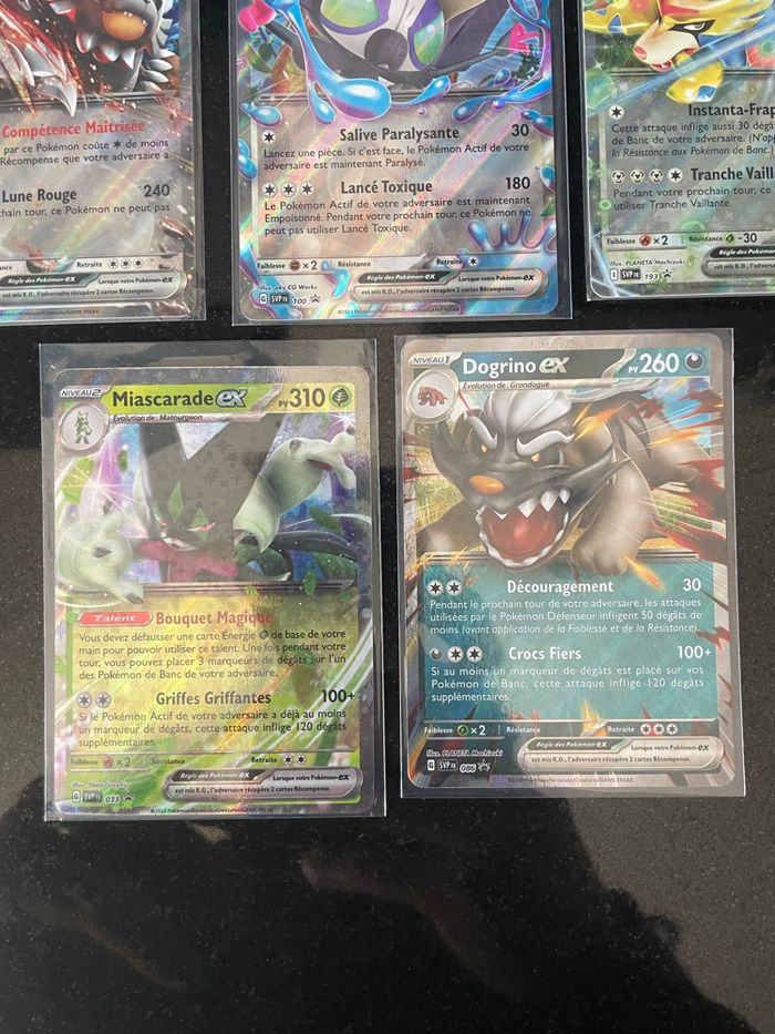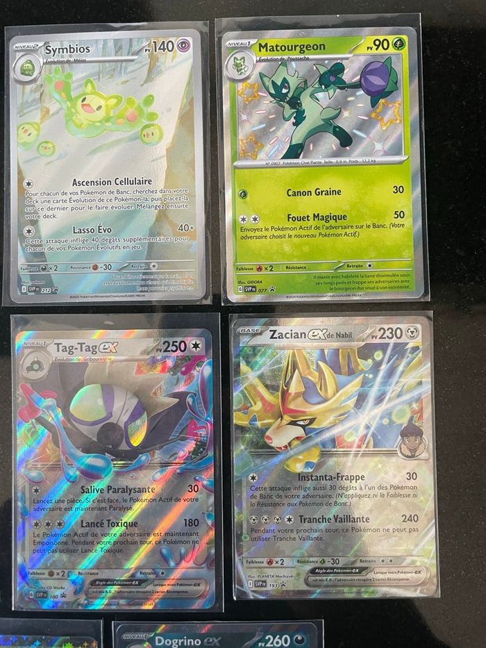 Lot de 8 cartes Promo SVP du bloc ecarlate et violet - Siderella svp 211 - Maturgeon shinny svp 077 - Symbios svp 212 - Ursaking lune de vermeille svp 177 - tag tag ex svp 100 - Zacian ex de nabil svp 193 - Miascarade ex svp 033 - Dogrino ex svp 086