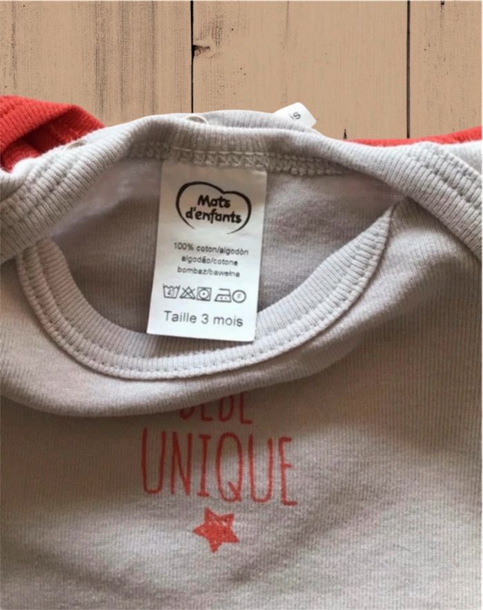 Lot de 2 bodies mixte MC – 3 mois – Mots d’Enfants – TBE - photo numéro 3