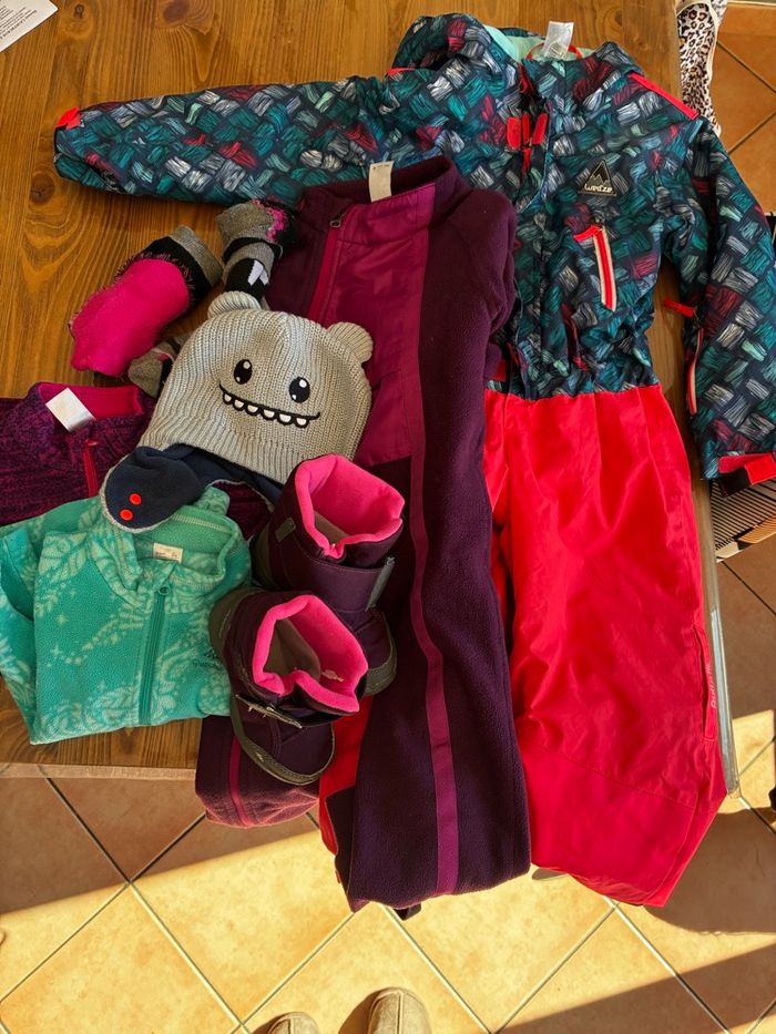 Après ski taille 24 Combinaison avec un peu de noir voir photo 3pulls 1bonnet 1 sous combinaison polaire