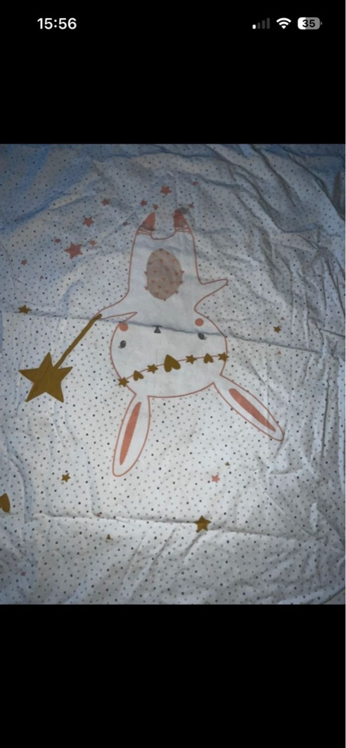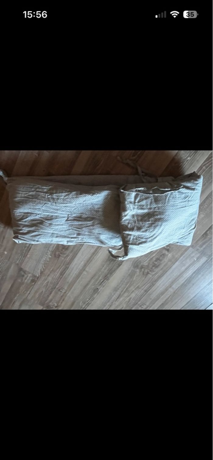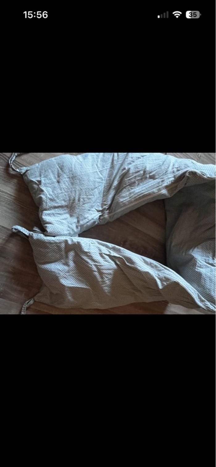 Lot articles lit bébé (berceau) Couette, housse de couette, housse de matelas avec fermeture (tachée) tour de lit. (Peuvent sentir un peu l’humidité car dans un placard depuis quelques temps. Maison fumeur avec des animaux. Seront relavés avant envoi.
