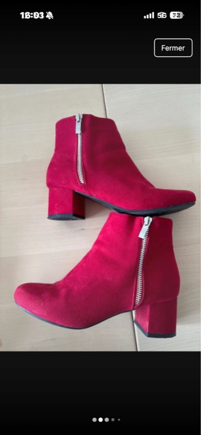 bottines femme en suédine rouge, marque GEMO, pointure 38, talon carré confortable. 38 • Bon état • Gémo - photo numéro 2