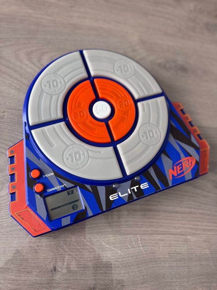 Cible électronique Nerf En excellent état S’accroche au mur et bien sûr pied Plus d’infos sur demande Envoi rapide et soigner uniquement par mondial relais et chronopost merci ☺️