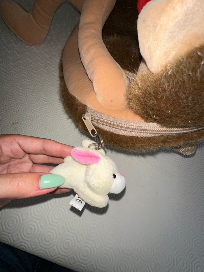 • Bon état • Bretelles réglables • 1 pochette sur son ventre et une pochette au niveau de son dos • PS : petit porte clé lapin offert